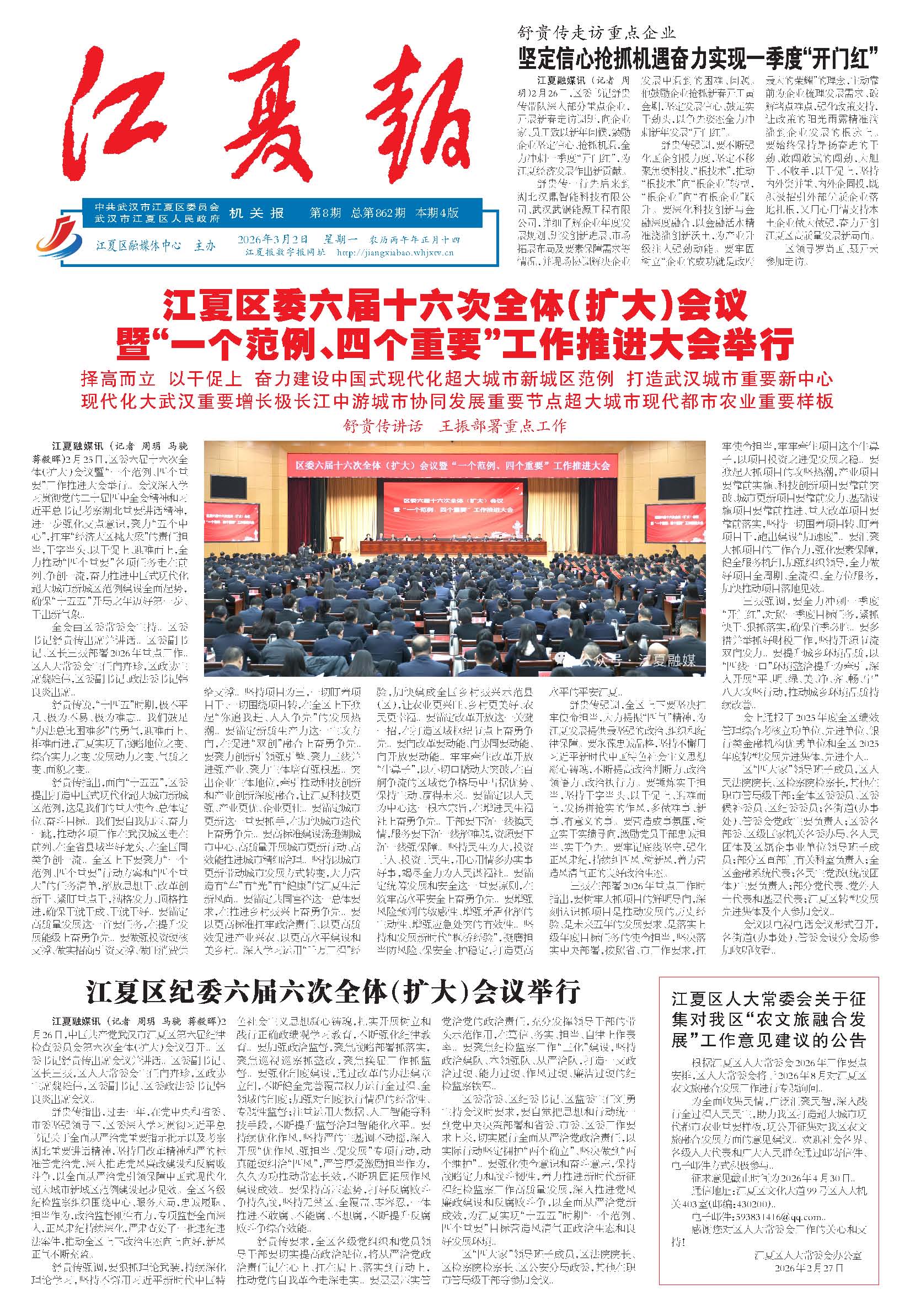 择高而立 以干促上 奋力建设中国式现代化超大城市新城区范例 打造武汉城市重要新中心 现代化大武汉重要增长极长江中游城市协同发展重要节点超大城市现代都市农业重要样板舒贵传讲话 王振部署重点工作江夏融媒讯 (记者 周玥 马骁 蒋毅晖)2月25日,区委六届十六次全体(扩大)会议暨“一个范例、四个重要”工作...