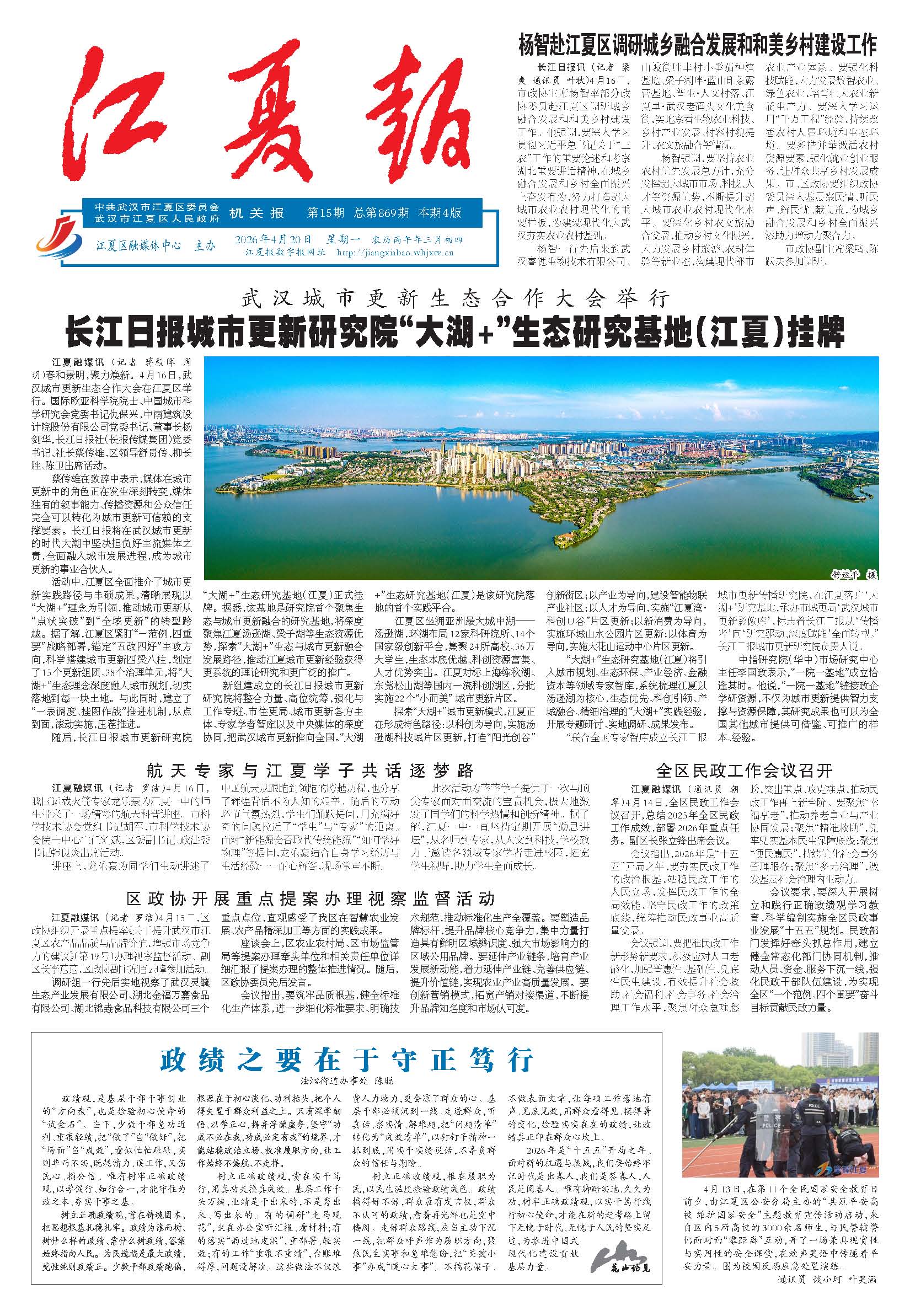 长江日报城市更新研究院“大湖+”生态研究基地(江夏)挂牌江夏融媒讯 (记者 蒋毅晖 周玥)春和景明,聚力焕新。4月16日,武汉城市更新生态合作大会在江夏区举行。国际欧亚科学院院士、中国城市科学研究会党委书记仇保兴,中南建筑设计院股份有限公司党委书记、董事长杨剑华,长江日报社(长报传媒集团)党委书记、...