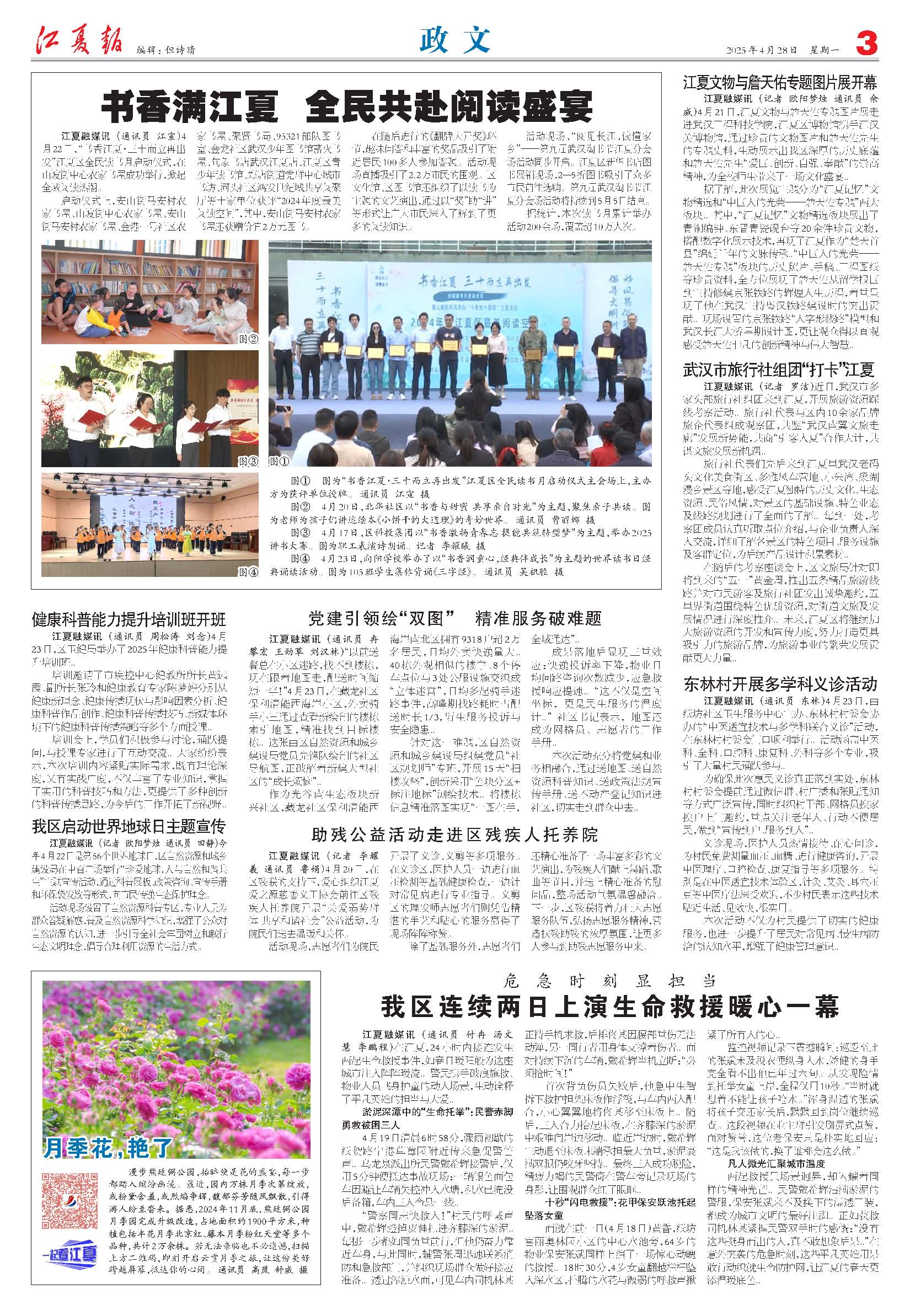我区连续两日上演生命救援暖心一幕江夏融媒讯 (通讯员 付冉 汤文慧 李鹏程)在江夏,24小时内接连发生两起生命救援事件,如春日暖阳般为这座城市注入阵阵暖流。警民携手破浪施救、物业人员飞身护童的动人场景,生动诠释了平凡英雄的担当与大爱。淤泥深潭中的“生命托举”:民警赤脚勇救被困三人4月19日清晨6时5...
